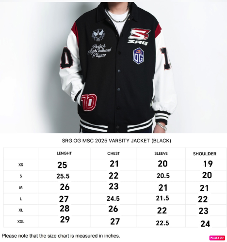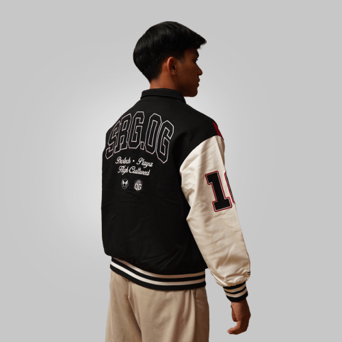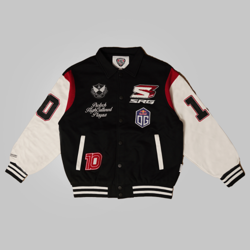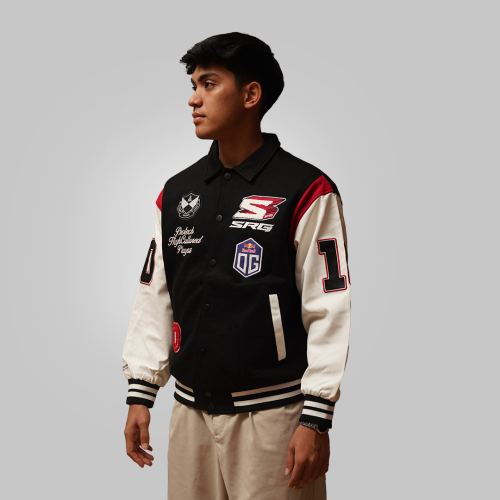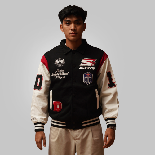 Introducing SRG.OG MSC 2025 x HIGH CULTURED x Playaz X Protech Varsity Jacket. This standout piece features a classic turn-down collar and detailed embroidery badges on the front that make it look even more fantastic. The bold “SRG.OG” lettering across the back, paired with the three collaboration logos, adds a unique layer of texture and style. Finished with the number “10” on both sleeves brings an extra touch of character, making this jacket a true statement piece for SRG fans.